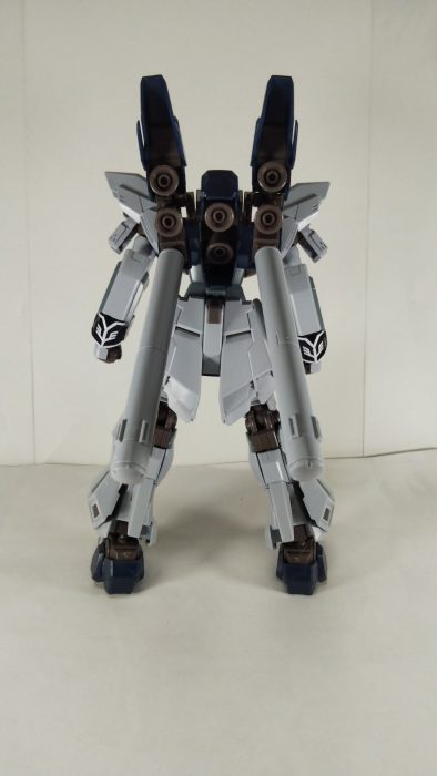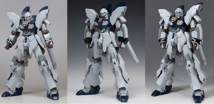 旧シナンジュと比較すると一目瞭然、肩の引き出し関節は二重構造になっているわ、膝はMOONガンダムのように連動して可動するわ、股関節はボール接続に大腿部に回転軸あるわ、全く別物の作りです。