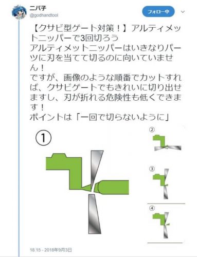 >アルティメットニッパーでクサビゲート切断はニパ子が図説してるよ