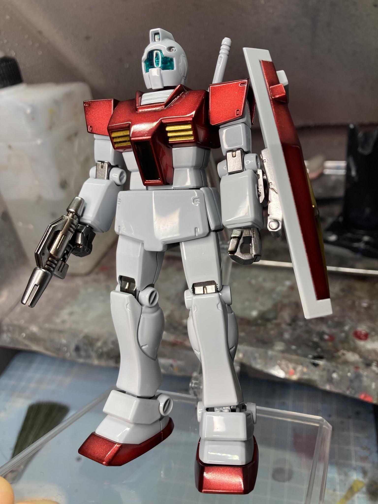 ジムスパルタン、まだ組んでる最中だけどディティールに沿った分割で合わせ目出ませんよって所の合いがいつも以上に甘くてパテ盛らないと気になる…