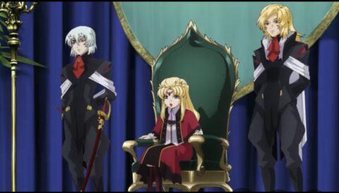 確かに皇女の前での礼(キラは浅い、シンはせず)