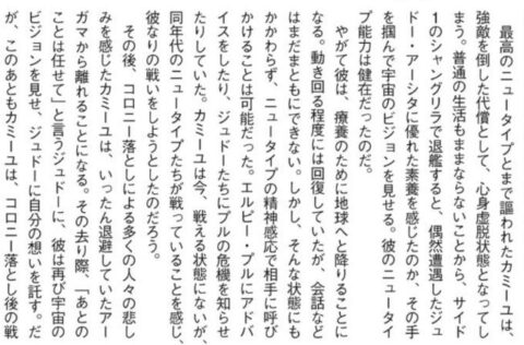 しかしカミーユ自身はNT能力が高すぎて、未だに向う側の世界に囚われているらしい