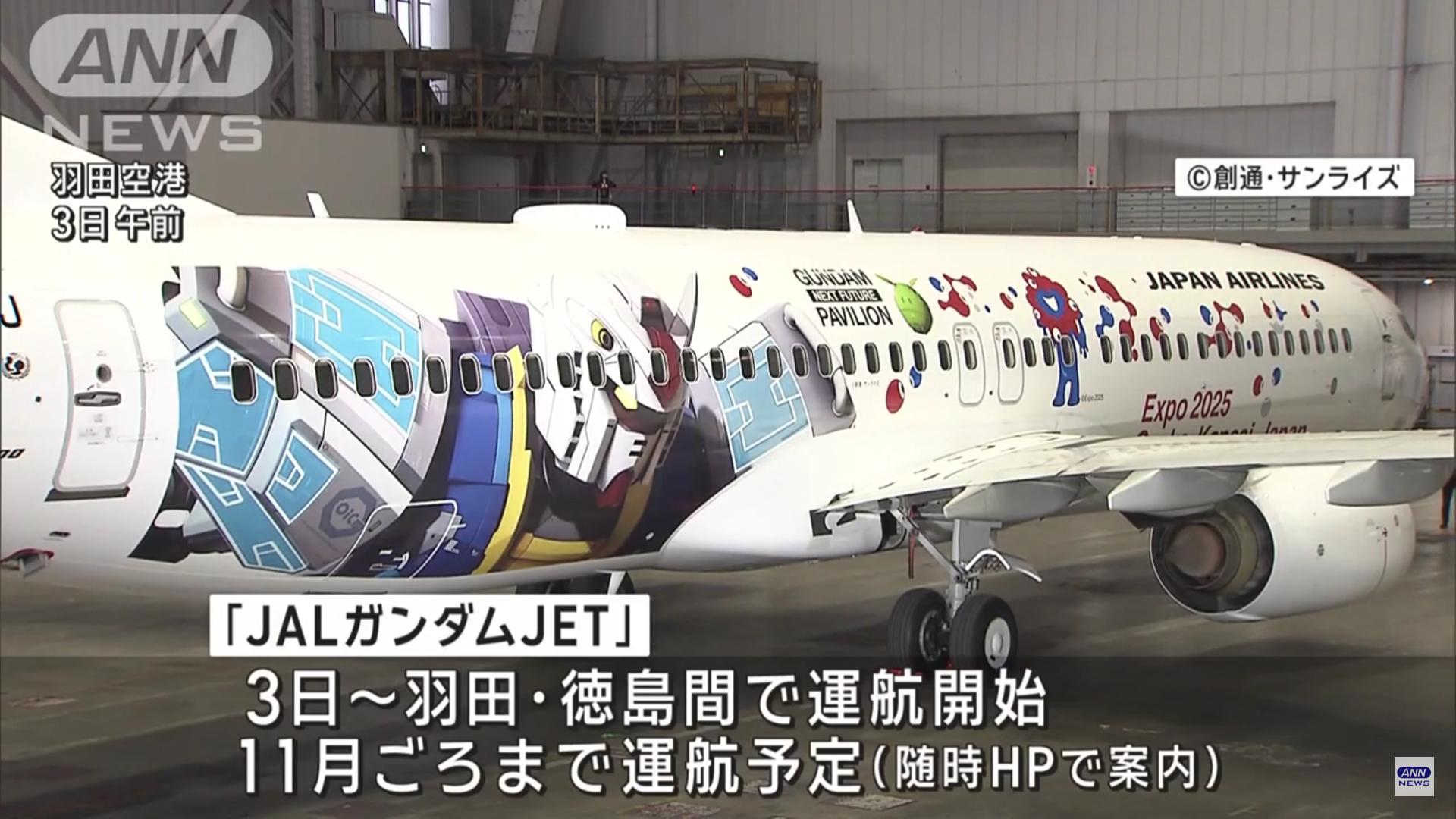 ・日本航空(JAL)は、大阪・関西万博に向けて、アニメ「ガンダム」が描かれた特別機「JALガンダムJET」を発表した