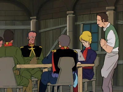 アムロが店の中で出会ったランバラル隊の人達