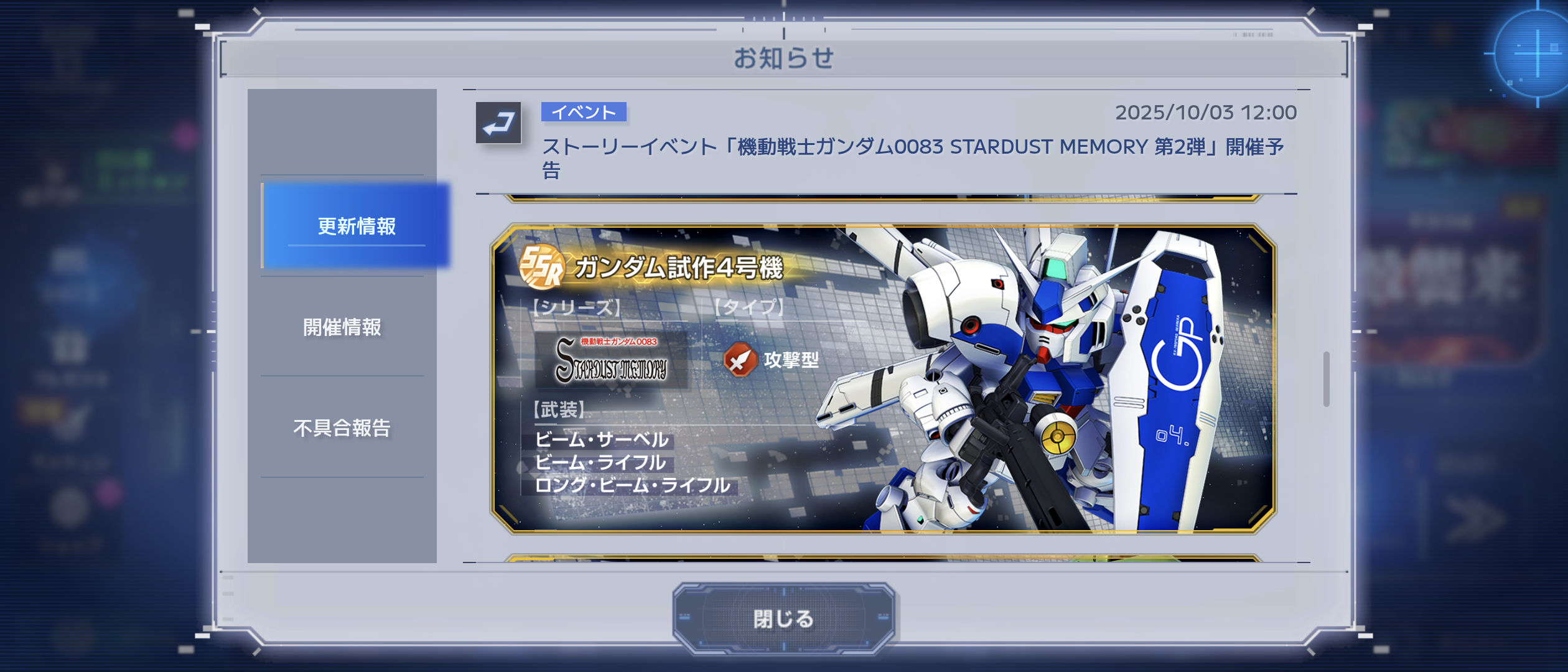 10/10 12:00より、ストーリーイベント「機動戦士ガンダム0083 STARDUST MEMORY 第2弾」を開催いたします。