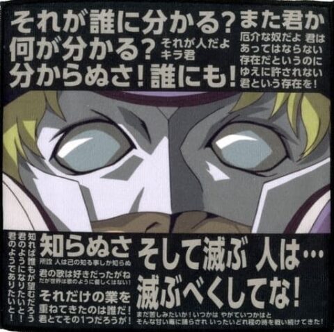 因みにキラが「それしか知らないあなたが!!」と図星をついて「知らぬさ!!」とクルーゼが会話のキャッチボールを放棄したから、逆にクルーゼが論破された形だったりする