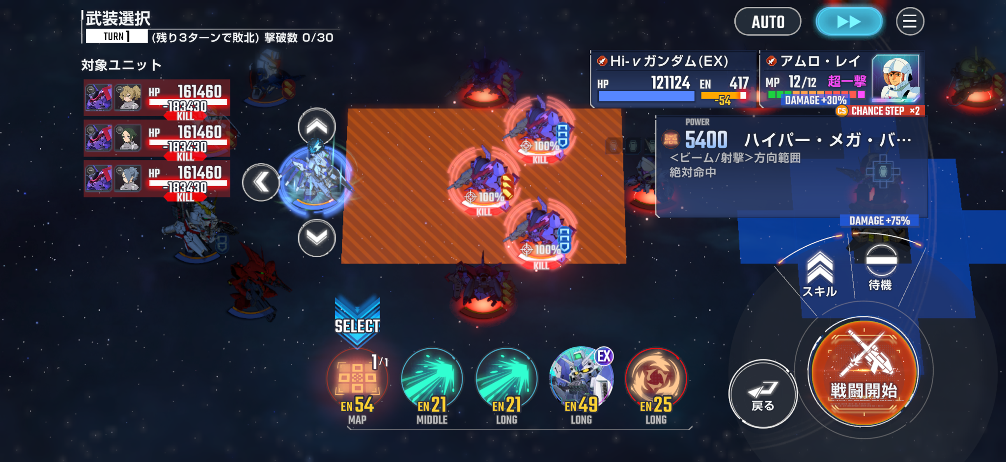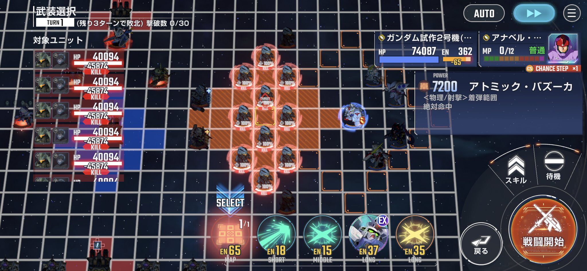3ターン目で左殲滅&中央陣取ると相手の援護防御範囲からスローネ2機が外れるから焼け野原も処理