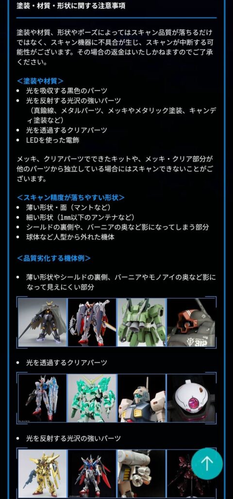 >以下のガンプラは、本サービスに適さないため、スキャンしないようお願いいたします。